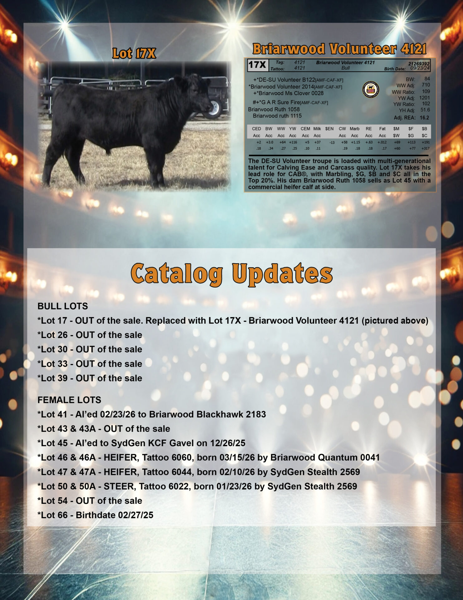 Thank you to Briarwood Angus Farms’ loyal customers, farm manager David Warfield, auctioneer Bill Nance, LiveAuctions.TV, and our entire Briarwood crew for making our 2025 Spring Sale a cosmic success! Our event was one of the best sales in Briarwood Angus Farms’ 61 years in the beef business.